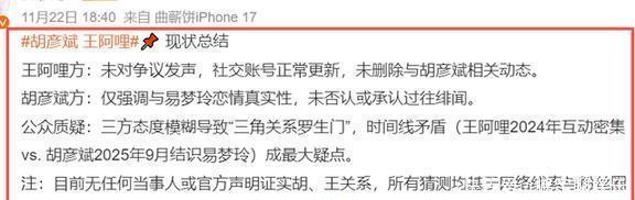 还有一些粉丝觉得易梦玲是在插足。明明胡彦斌和王阿哩在谈恋爱,咋就易梦玲偏要插一脚,觉得她这个行为实在不太合适呢?于是就传出了“胡彦斌疑似脚踏两条船”的传言,让胡彦斌无从辩解。